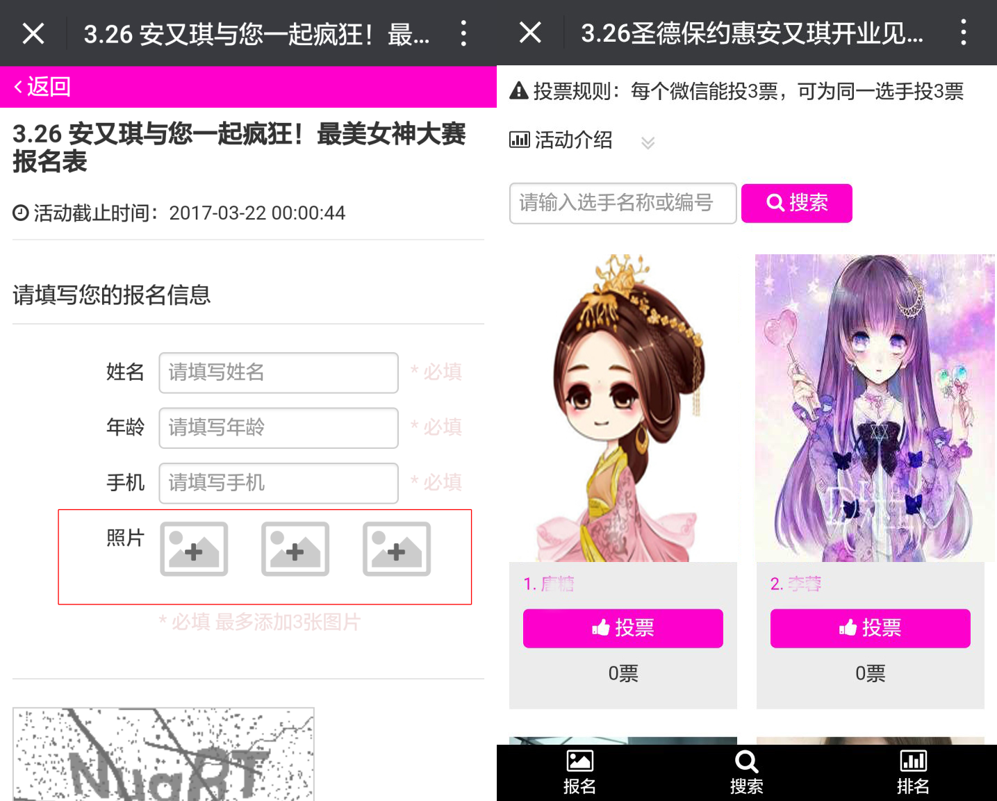進(jìn)入到這個(gè)界面后,點(diǎn)擊“照片+”這個(gè)框框,然后上傳你的3張美照,就可以完成報(bào)名了,然后拉上你的死黨每日為你投票吧,每日可以投3票哦!!!記得哦!!!