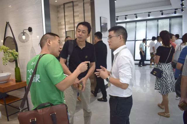 珠海市室內(nèi)裝飾行業(yè)協(xié)會的領(lǐng)導(dǎo)嘉賓們首先來到圣德保展廳進(jìn)行參觀學(xué)習(xí)。在“簡約、時尚、現(xiàn)代、個性、綠色健康”的現(xiàn)代展廳中,展示著圣德保產(chǎn)品的原生態(tài)自然美學(xué),各領(lǐng)導(dǎo)嘉賓都對圣德保陶瓷表現(xiàn)出濃厚興趣,一邊認(rèn)真觀賞產(chǎn)品,一邊與業(yè)務(wù)經(jīng)理們交談產(chǎn)品的工藝構(gòu)造,色彩搭配,空間展示等信息,現(xiàn)場氣氛活躍且愉快,在場領(lǐng)導(dǎo)嘉賓不時拿起手機(jī)拍下心儀的的產(chǎn)品,頻頻點(diǎn)頭稱贊產(chǎn)品質(zhì)量以及極具個性的設(shè)計(jì)風(fēng)格。